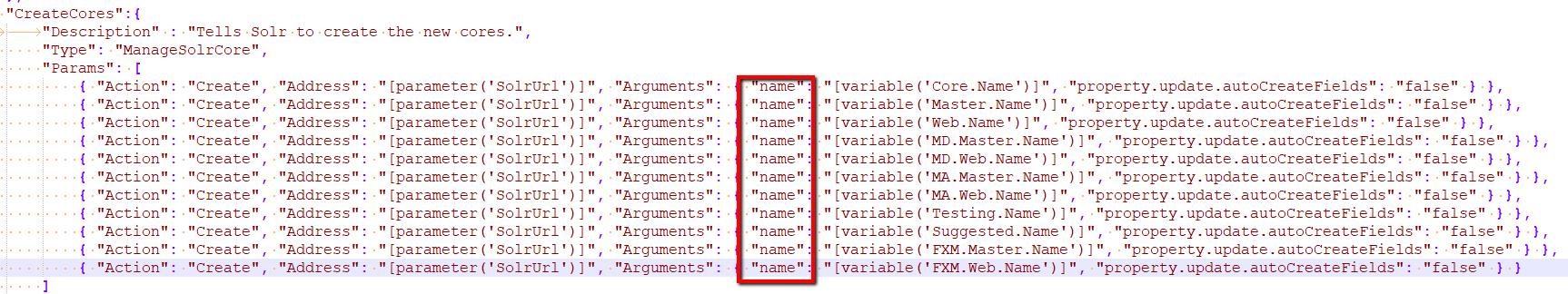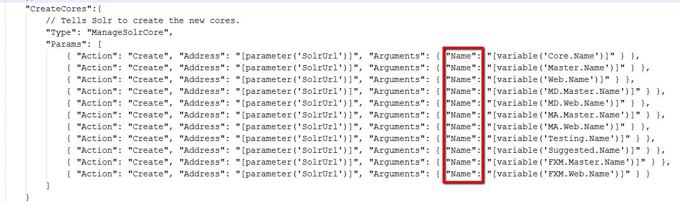 The CreateCores task will call the SOLR CoreAdmin API to create the cores.