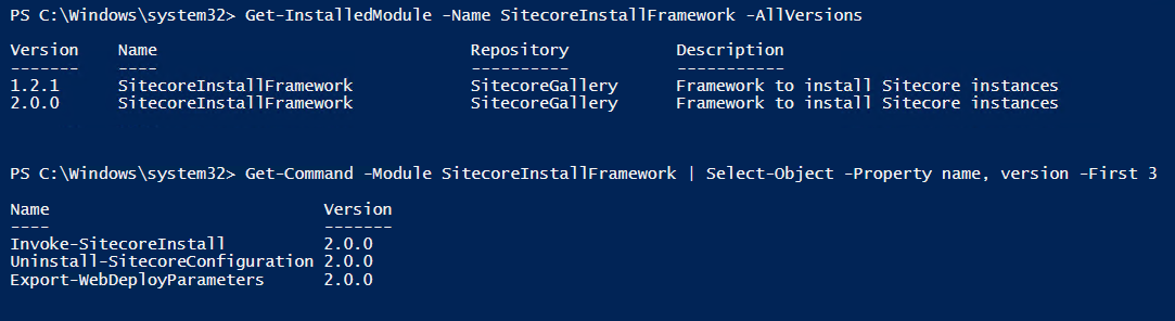 Now multiple versions of the SitecoreInstallFramework have been installed and are available to be used. But by default the most recent one is loaded into your PowerShell session!