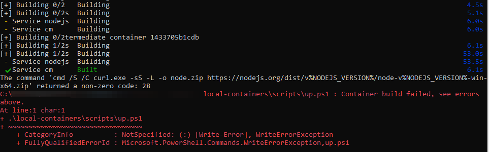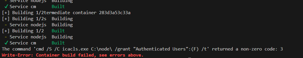 ERROR: Service 'nodejs' failed to build : Build failedI changed: