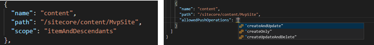 SingleItem (default), ItemAndChildren, ItemAndDescendants and DescendantsOnly. - AllowedPushOperations defines what needs to be done during the synchronziation. Options are: