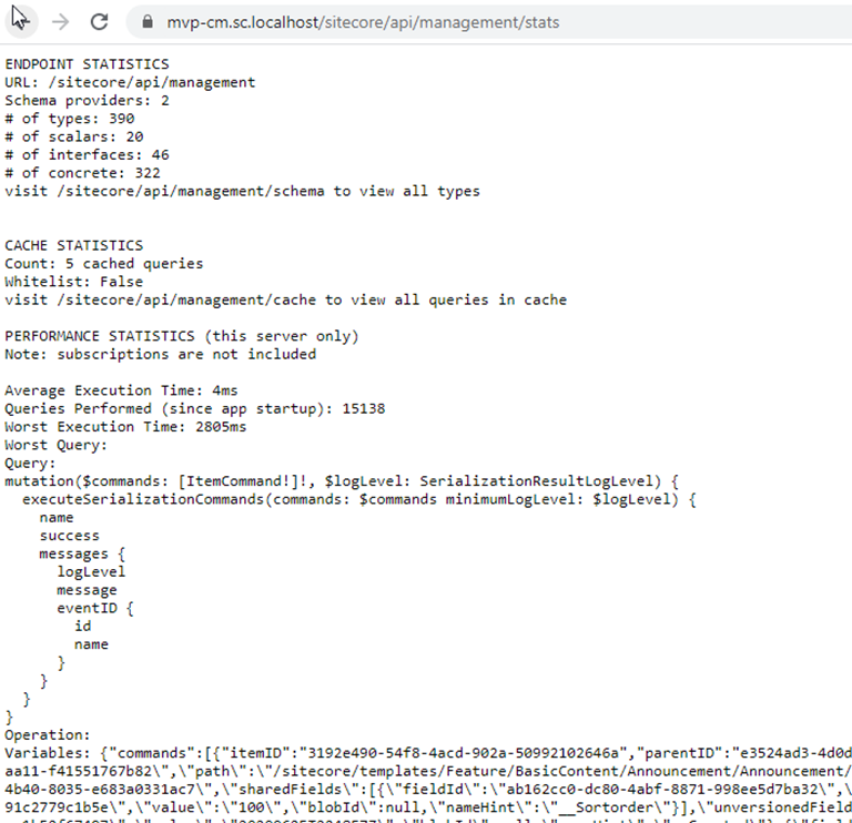 - $baseUrl/stats: shows statistics about the endpoint, its type system and performance