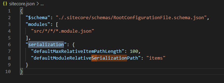 You also define the serialization path, in this example it is called items. Having this defined, will create a folder in each foundation, feature or project that has a module.json file defined in its root.