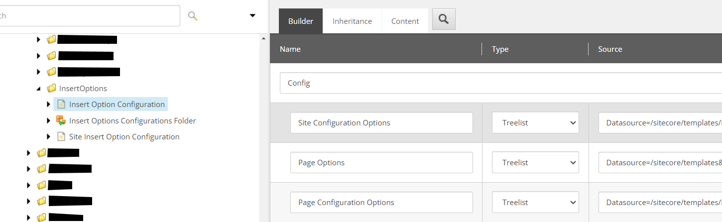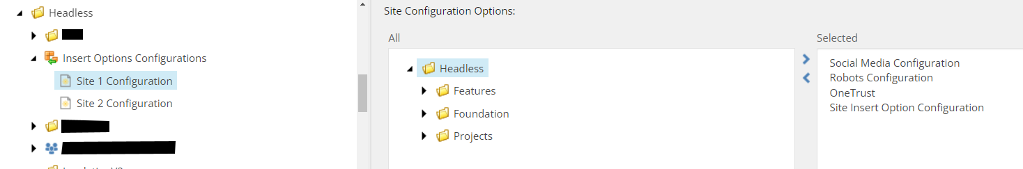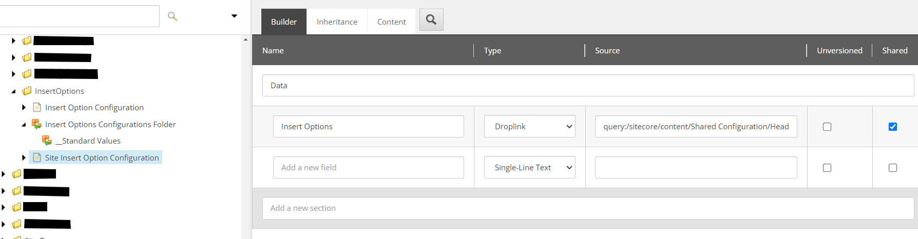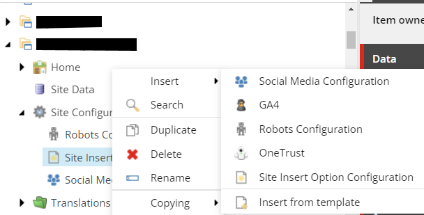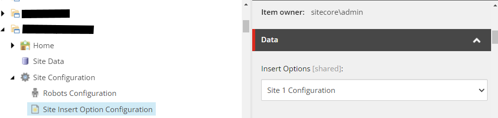 The last template is the Site Insert Option Configuration which - when created underneath a website - will allow you to select the created configuration from the shared section in the tree.
