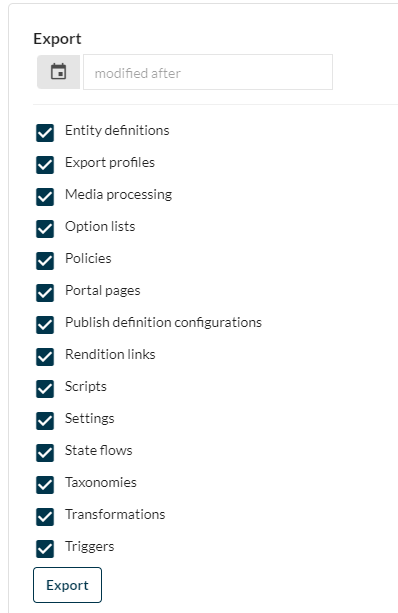 Example from an import below but note that I didn't need to import everything so Script, Media Processing and some others aren't shown here: