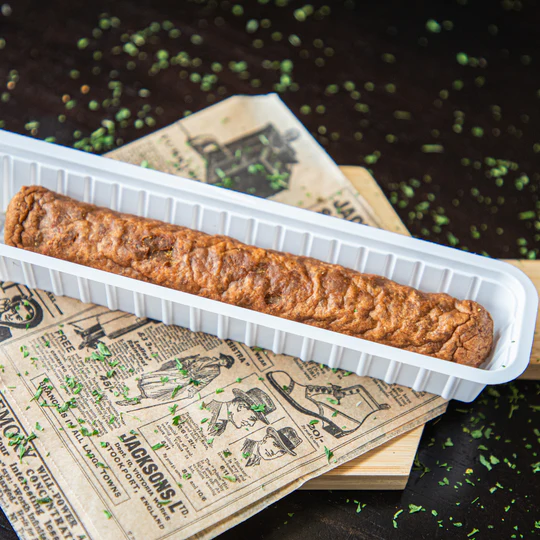 - Meat formed in a long shape. Will contain chicken / pork / beef meat and brought up to taste with several spices.