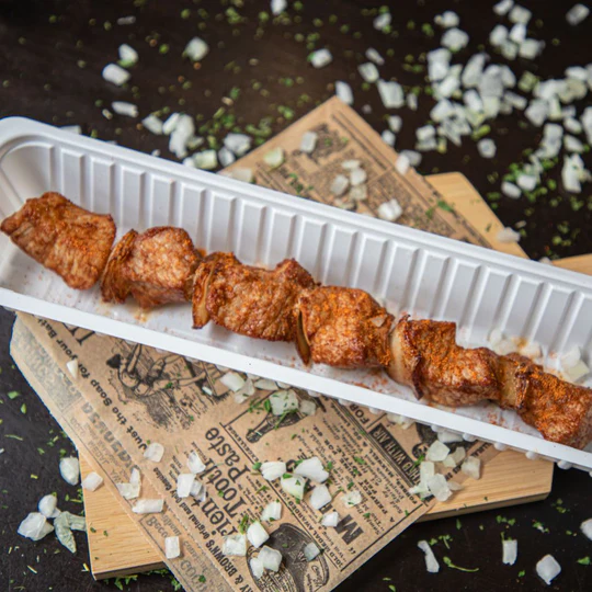 - Tender meat on a stick separated by some onion